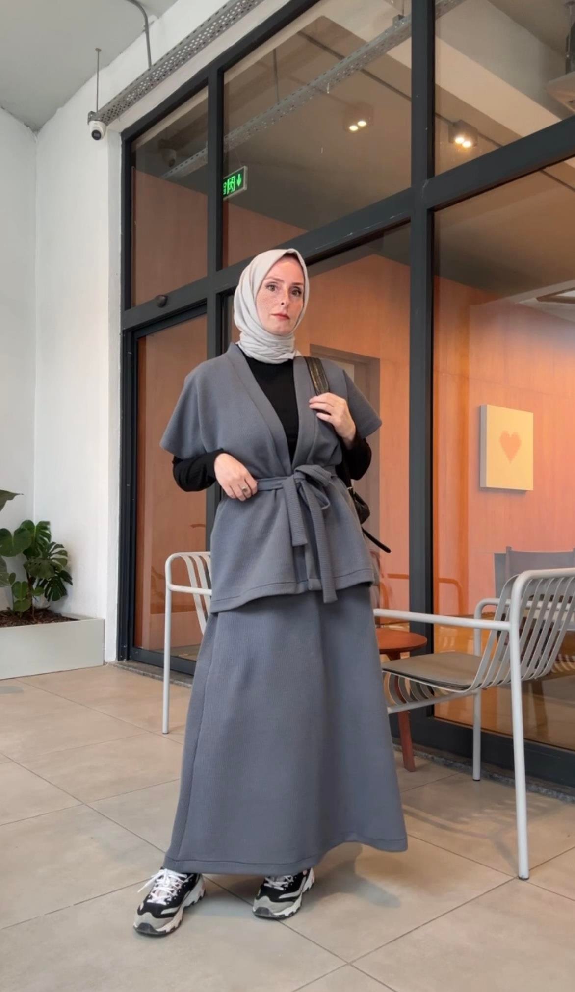 Kalın Fitilli Örme Kumaş Etek Yelek Takım
